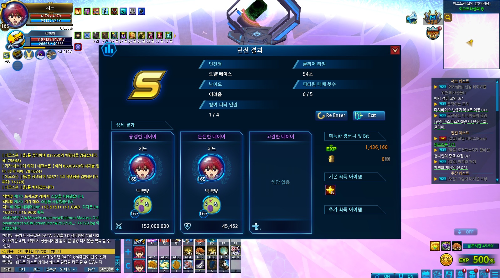 1페 : 돌몬, 로얄나이츠 3마리, X-DATA 코어 데이터 처치