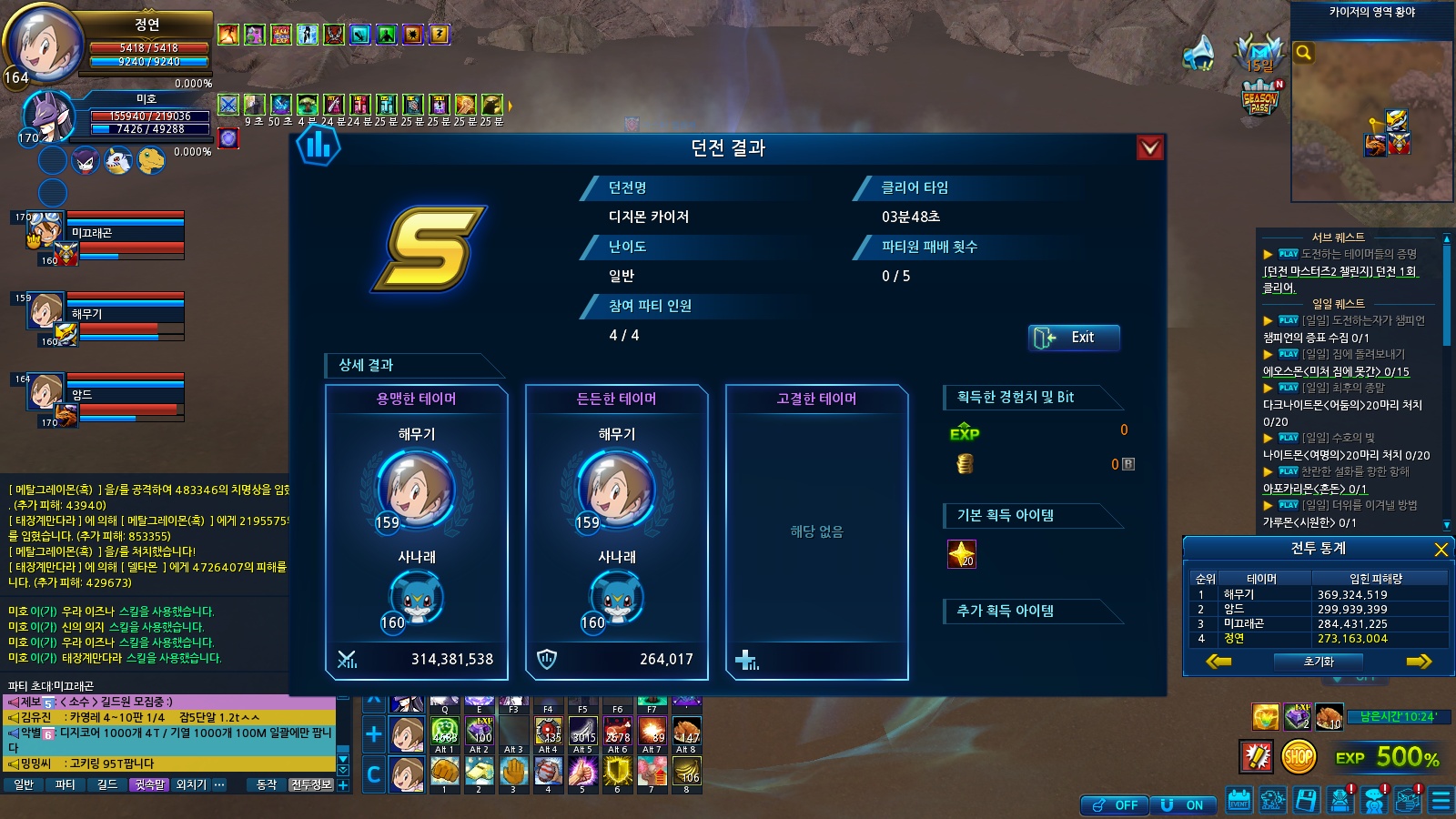 4) 다크타워를 부수고 난 이후 메탈그레이몬(흑)(이하, 메청)이 나오게 되는데 이때 파티원 전부 사각딜 즉, 방향 당 한명씩 딜을 하는것을 추천 드립니다. 메청이 소환된 이후 약 1분10~20초마다 침묵이라는 디버프를 사용하므로 타이밍 맞추어서 무녀유저는 정화를 써주면 됩니다.