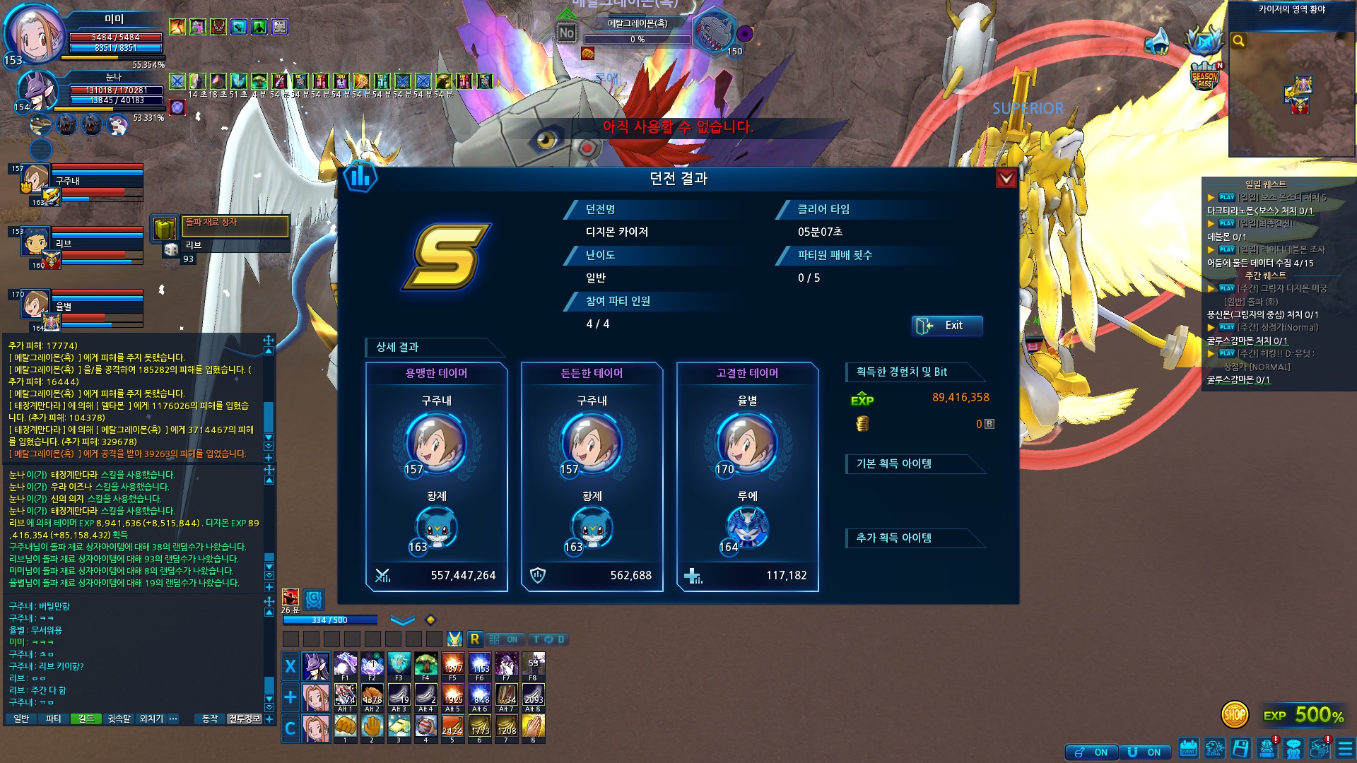 체력 70%일 때 울퉁몬 등 잡몹이 나오고, 몸딜 제외 3명이 빠르게 처치.