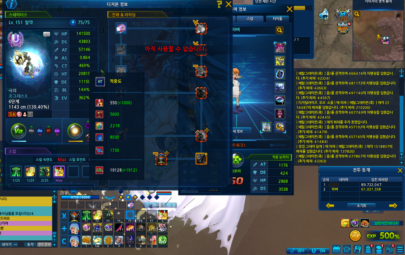 디지몬 카이저 던전 150레벨 기준 풀 적중은 21,000이지만 실제 적용 수치 반영으로 20,819로 쳐서 미스가 난 모습입니다.