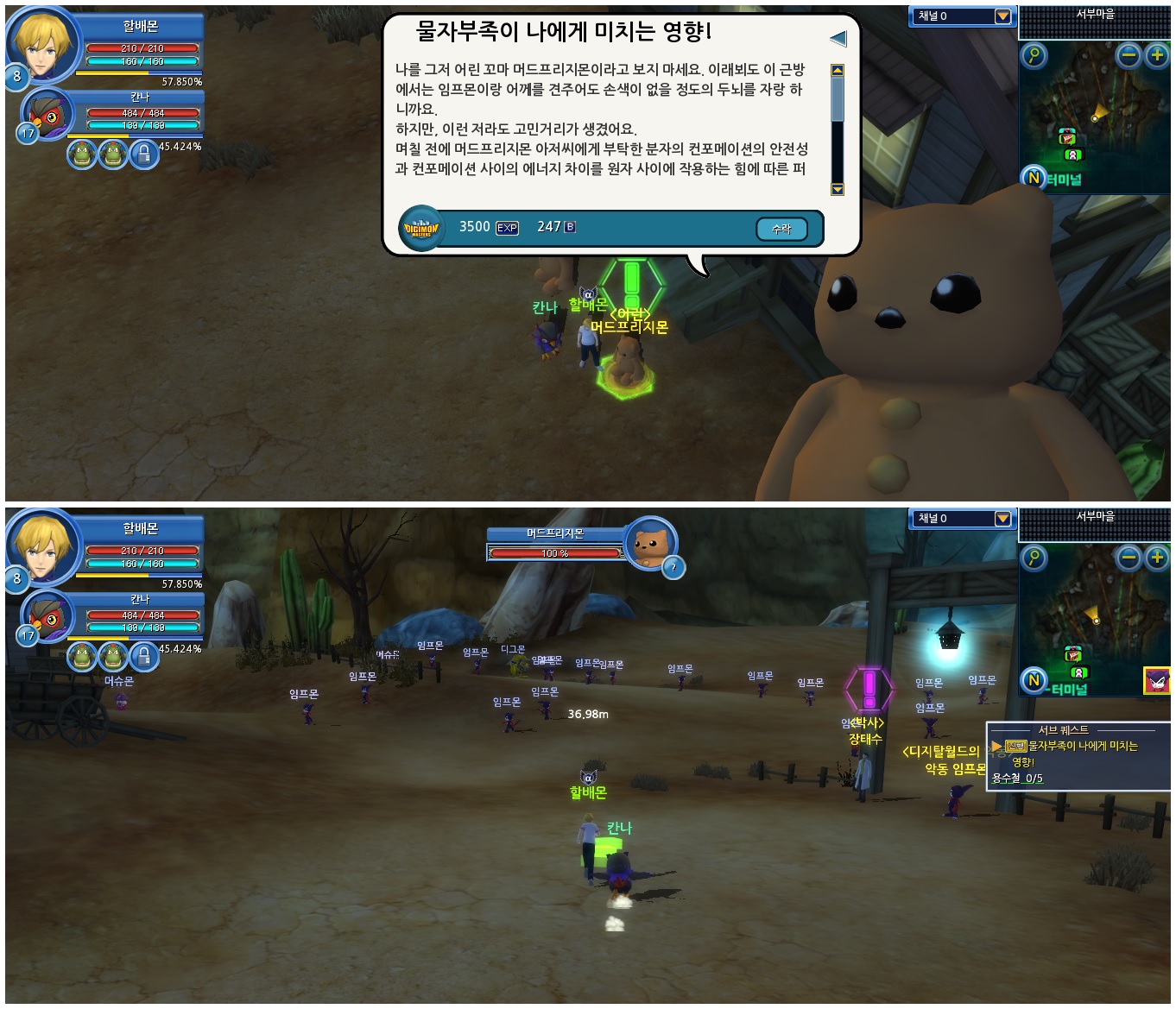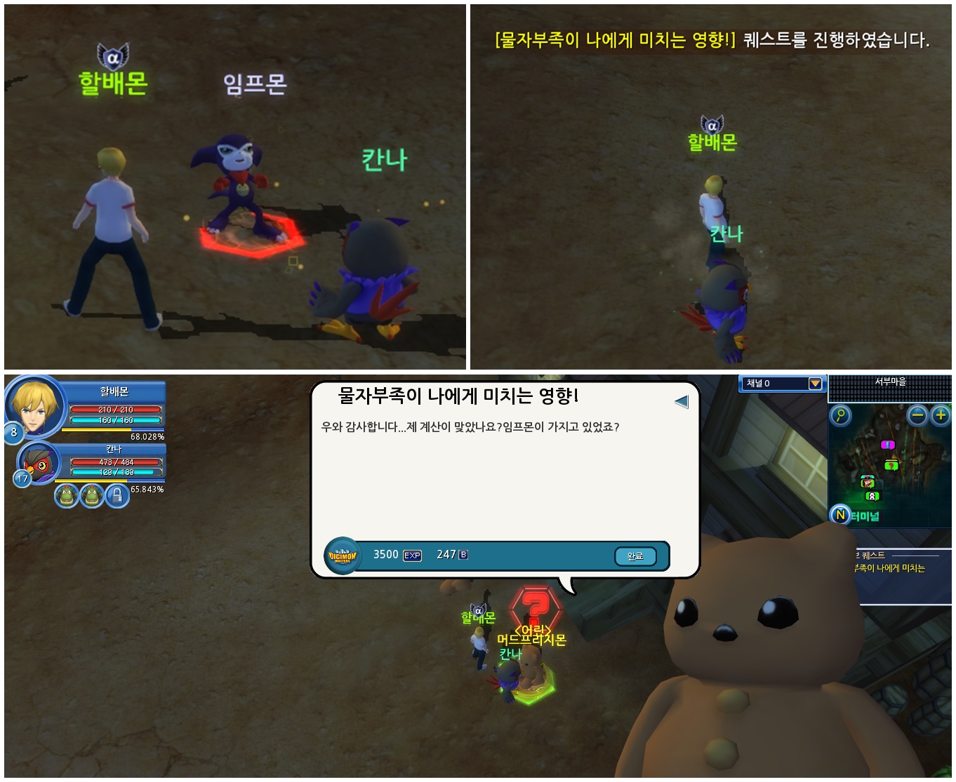 서부마을 지역 북쪽으로 이동하여 NPC 악동 임프몬에게 대화를 하면 완료!
