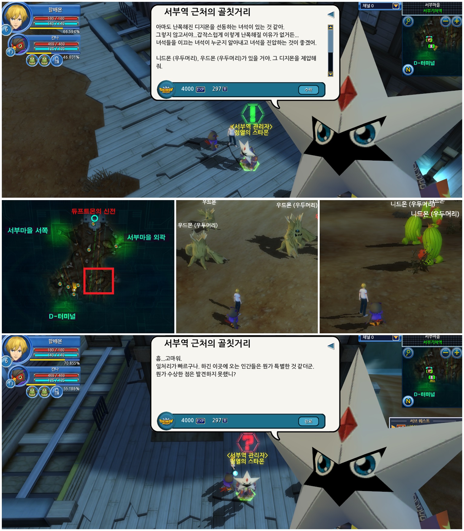 “출발! 서부마을” 퀘스트를 완료하면 NPC 정열의 스타몬이 연계 퀘스트로 “서부역 근처의 골칫거리” 라는 퀘스트를 줍니다.