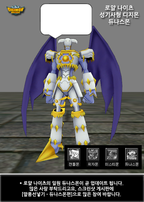 (참고 : 듀크몬과 로드나이트몬 듀나스몬이 모두 같이 한 스샷에 있어야 하겠죠? 혼자는 외로워요~)]
